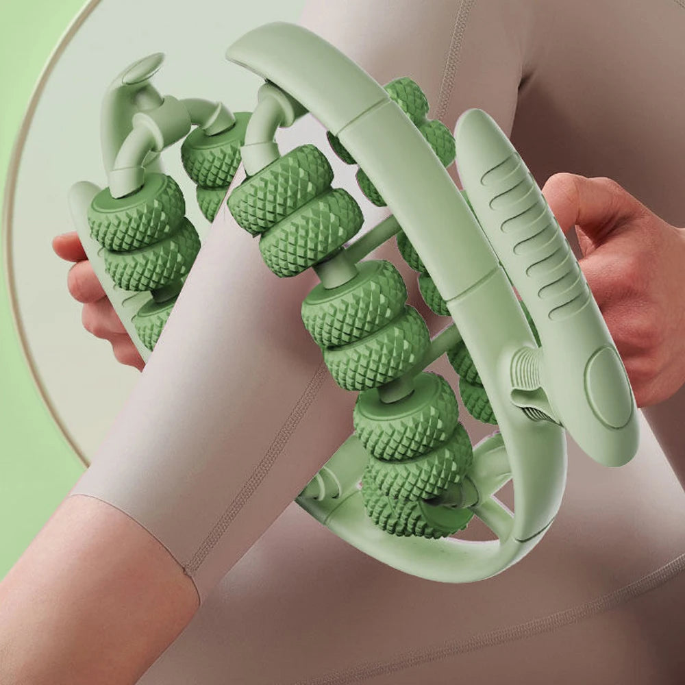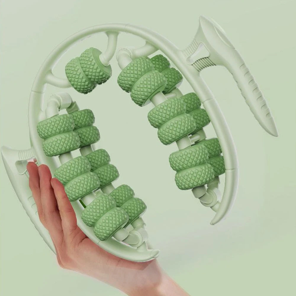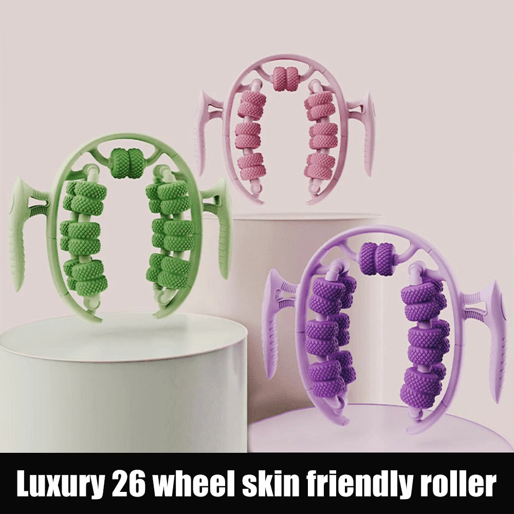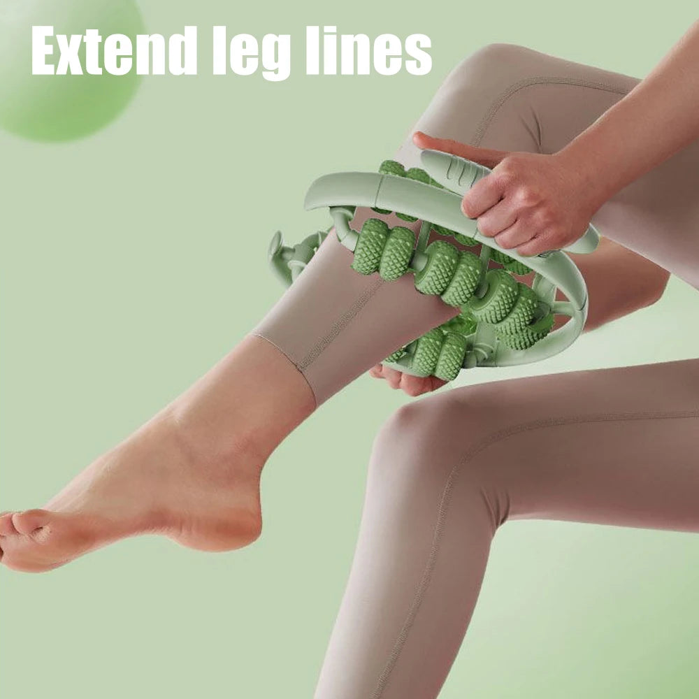 Tone and massage your legs with this 26-wheel handheld massager. Its 360° rotation helps reduce cellulite, improve blood circulation, and smooth skin. Lightweight, multifunctional, and easy to use at home or on the go.