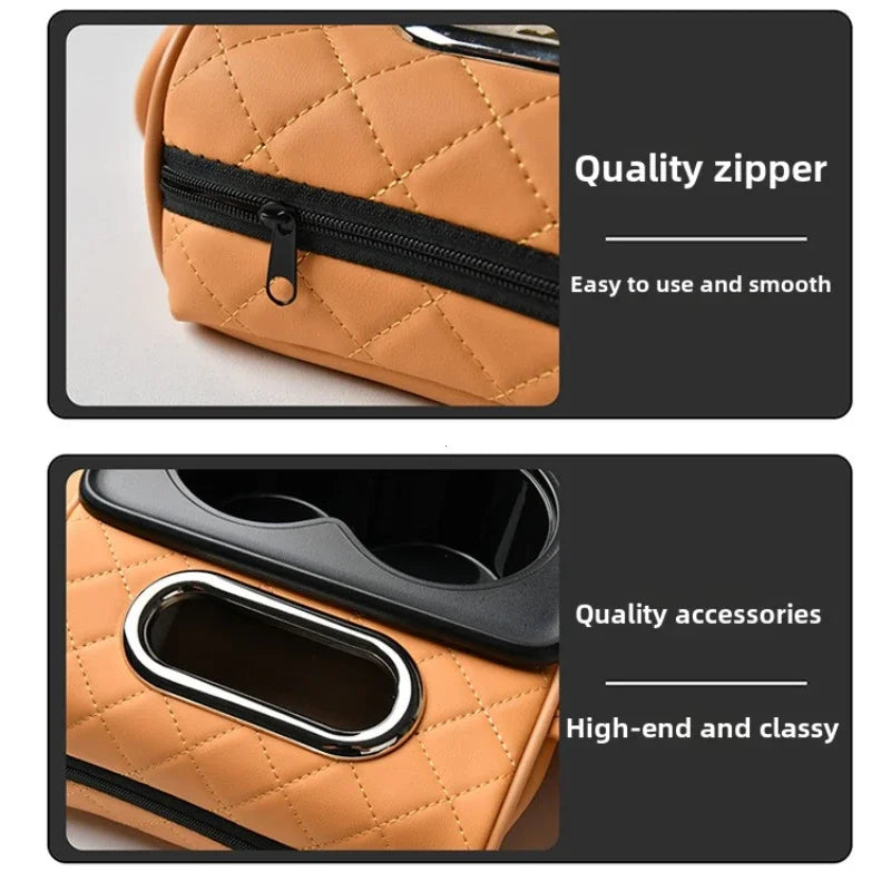 Special Features: Armrest cushion, tissue holder, cup holder, storage bag
