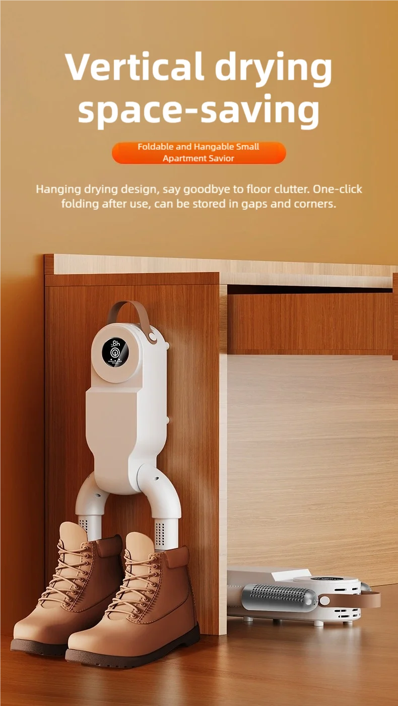 Keep your shoes and socks dry, fresh, and odor-free with this foldable touchscreen shoe dryer. Fast heating and hot air circulation sterilize, deodorize, and remove moisture—perfect for all shoe types and daily use.